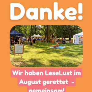 Alle „LeseLust im August“ Organisatoren, alle LeseLust Leipzig eV Mitglieder, alle Besucher und vor allem alle leselustigen Kinder sagen „DANKE“ an alle, die uns so großartig unterstützt haben.