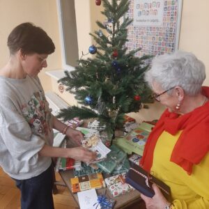 Neben dem vielseitigen Mitbringbuffett war das jährliche Buchwichteln unter dem Weihnachtsbaum in weiteres Highlight des Abends, was für viele schöne Überraschungen und unterhaltsame Gespräche sorgte.