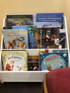 In dem weihnachtlich dekorierten Raum warten eine gemütliche Leseecke, eine ganze Menge weihnachtlicher Bücher sowie kreative Mitmach-Angebote auf die Besuchenden.