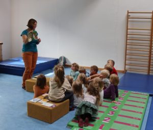 Unsere Vorlesepatin Petra Paula Schwab hat leselustigen Kindern in einem der ruhigen Turnzimmer der Springmäuse eine Bewegungspause mit Geschichten gegönnt. Die jungen Zuhörenden lauschten aufmerksam – genau wie schon letztes Jahr als von Annika Beckmann vorgelesen wurde.